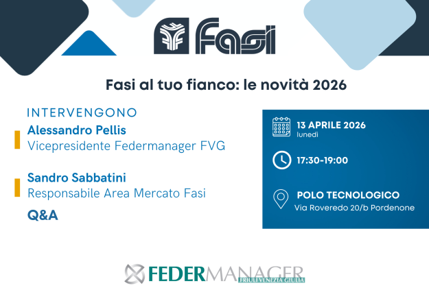 Gentile Collega, ti informiamo che lunedì 13 aprile 2026 si terrà l’evento organizzato da Fasi in associazione con Federmanager Friuli Venezia-Giulia, con l’occasione di approfondire insieme il valore delle tutele offerte dal Fondo e le novità introdotte nel 2026. Il convegno si terrà presso il Polo Tecnologico di Pordenone, in via Roveredo 20/b, a partire dalle 17.30. La…