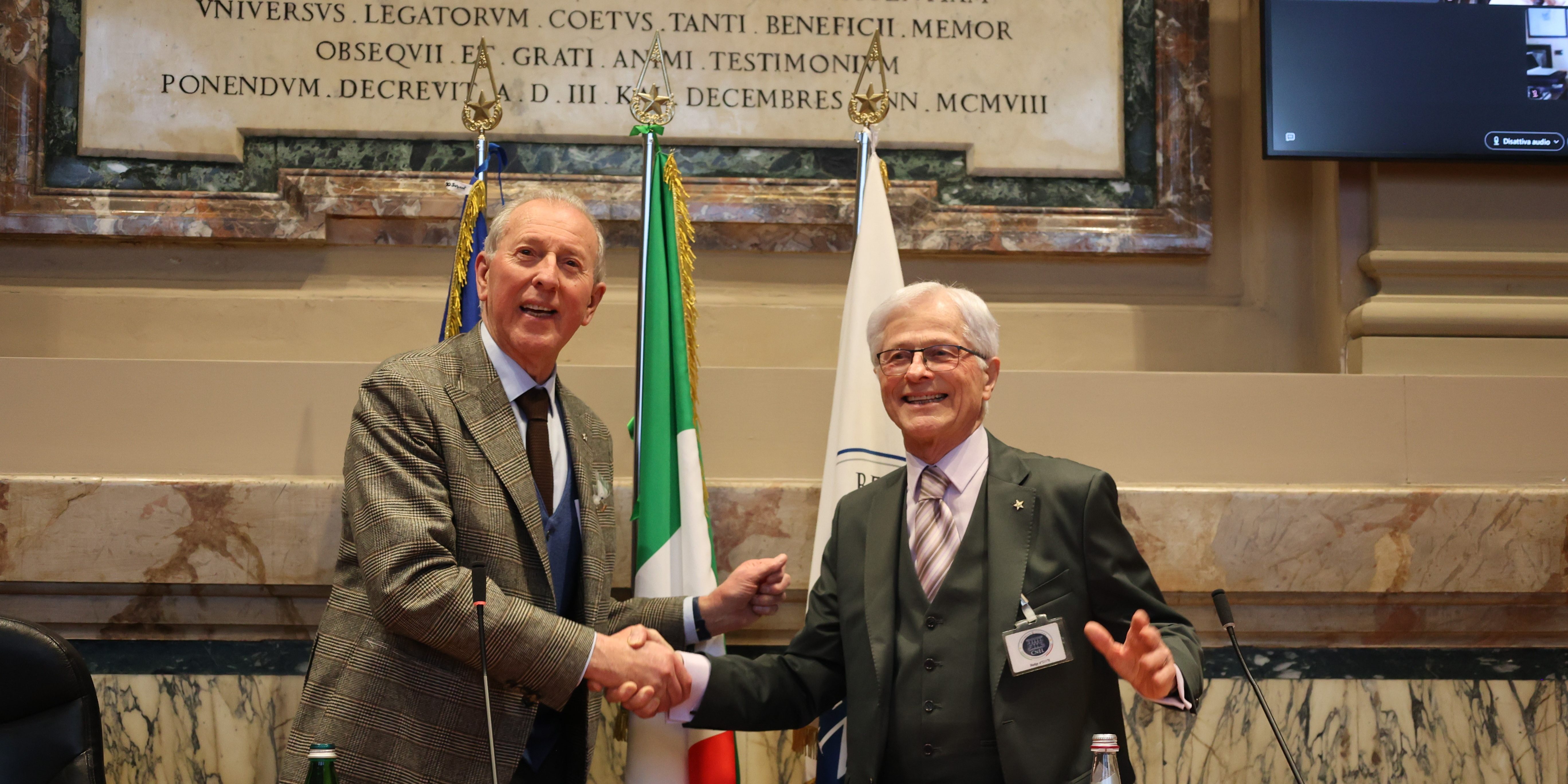 In foto: il passaggio del testimone tra il Presidente uscente Elio Giovati e il neoeletto Andrea Peressutti